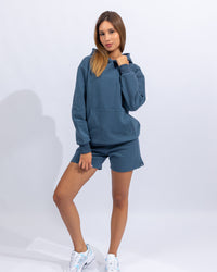 Introducing the Power Hoodie, a hoodie that combines luxurious softness with high-quality fabric, ensuring a cozy feel all season long. The full-length design and drop sleeves provide a relaxed fit that's perfect for a workout or a chill day. With its medium-heavy weight and Quwati written subtly on the sleeve, this hoodie exudes quality and sophistication. No drawstring for added comfort and a sleek finish. Whether you're wearing it as a set or on its own, the Power Hoodie is your grab-and-go essential for a stylish and cozy look.