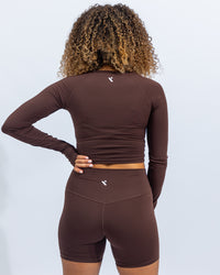 Power Long Sleeve Crop Top - Black Coffee