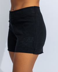 The Atlas Shorts offers a relaxed fit with an adjustable elastic waistband and a trendy raw-edge hem. Made with a unique fabric that boasts a brushed soft feel on the outside and a warm and cozy fleece on the inside, they are perfect for lounging or active days.