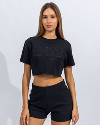 The Atlas Crop Top features a trendy crew neckline and a relaxed, cropped fit that keeps you looking effortlessly cool. With Quwati written in Arabic embroidered across the front, it adds a touch of personality to your outfit. Made with a luxurious fabric that has a brushed, soft feel on the outside and a warm and cozy fleece on the inside, this crop top offers ultimate comfort.
