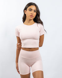 Introducing the Power Crop Tee, made with moisture-wicking fabric, this tee keeps you cool and dry during intense workouts. Engineered with lightweight performance fabric, it offers breathability without compromising comfort. With its soft touch and cropped length, it pairs perfectly with our high-waisted leggings and cycling shorts! You can mix and match between the colors.