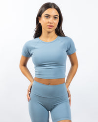 Introducing the Power Crop Tee, made with moisture-wicking fabric, this tee keeps you cool and dry during intense workouts. Engineered with lightweight performance fabric, it offers breathability without compromising comfort. With its soft touch and cropped length, it pairs perfectly with our high-waisted leggings and cycling shorts! You can mix and match between the colors.
